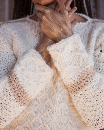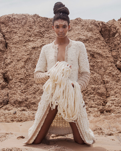 Esta colección representa y evoca a la fuerte África, sus rasgos y sus colores terrenales. Mostramos esa mujer fuerte e independiente. Se destacan cortes en las prendas con acentos de colores y juego de texturas ricas en tejidos. Como protagonista de la colección se presenta la combinación del cobre con piedras y lana, lo cual remite a nuestra conexión con la Tierra y a nuestra energía interna.